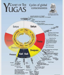 This 24,000-year cycle appears in the wisdom of many different traditions. It is known as the Yuga cycle in Hinduism, and it is also seen in astrology as the progression of ages through the twelve astrological signs, each age lasting 2,000 years.”