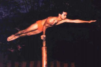 Their act consisted of the teacher balancing a tall bamboo pole on his head while the little girl climbed slowly to the top. Once to the top, she remained there while the teacher walked along the ground.