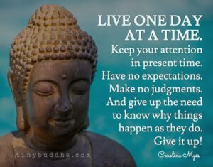 “The teachings of Gautam, the BUDDHA, are all about being in the middle. ( Not in the past, which is dead, and not in the future which is not yet born and totally non-existent). Gautam BUDDHA’s teachings are to be in the present. It is the path of total acceptance, of the NOW – HERE.