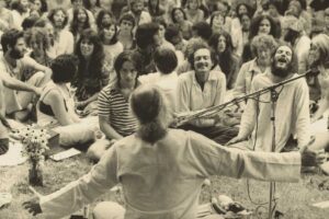 And I looked at those people who I had built up all this righteous indignation and hatred towards, sitting across the courtyard at the temple. And I went over there and I was in this ecstatic state from being with Maharajji and also my ego was in incredible pain, and I took apples and I cut them into little pieces and I know that you can’t feed somebody with anger, or it’s like giving them poison.