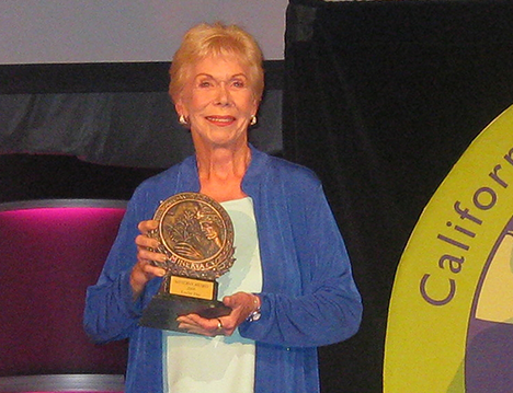 Maria Shriver presents Louise with the Minerva Award for women who are extraordinary leaders, role models, and visionaries.