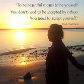 “Self-acceptance means accepting and coming to terms with ourselves now, just as we are, with all of our faults, weaknesses, shortcomings, errors, as well as our assets and strengths. Self-acceptance is easier, however, if we realize that these negatives belong to us — they are not us.