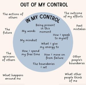 As noted in this prayer, there are some things in life that one cannot control. Know what these are and accept them (serenity). Recognize that these may be a part of your plan, lessons, or experiences on Earth even if you cannot understand the reasons why (wisdom). And then, turn your focus toward that which you can control and take positive steps forward (courage).”