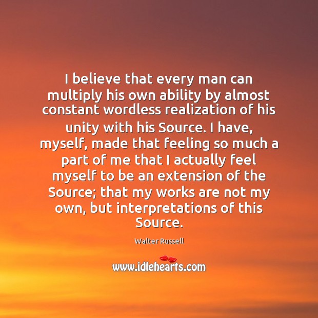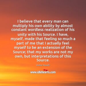 “One day a person said to me, ‘There is a man who illustrates in his own life all that you have been teaching. He is Walter Russell, a renowned painter, philosopher,