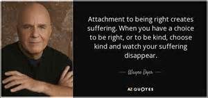 Perhaps the greatest lessons of my life have revolved around the slogan of the recovery movement: “Let Go and Let God”—a notion that involves relinquishing ego’s attachment to, or fear of, something. The single most pronounced attachment for most of us during our lives is the attachment to being right! There’s nothing ego loves more than to be right, which makes it an important and satisfying attachment to practice letting go.